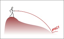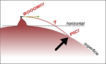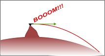 3.- La tercera cuestión es la que molesta a mis alumnos. Porque decir que el movimiento de la Luna y la caída de la manzana son la misma cosa es lo mismo que decir (y mis alumnos son muy rápidos en sacar conclusiones) que orbitar y caer son sinónimos. Ok, les digo, no desesperen, y les propongo esta serie de experimentos mentales, que el mismo Newton realizó. Suba a una colina, y desde la cima arroje una piedra… no la suelte solamente, arrójela de costado. Seguramente ya lo hizo antes y si no, se lo puede imaginar sin error: la piedra volará alejándose de usted y acercándose al piso. La trayectoria que recorre no tiene mucha importancia, se trata de una parábola que también supo describir Galileo. Pero la cuestión que nos interesa es que este nuevo movimiento no deja de ser una caída. Una caída de costado, si usted quiere, pero una caída al fin.